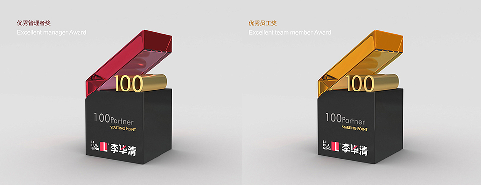 獎杯的階梯是由下方的100作為支撐,象征平臺的發(fā)展和進取離不開100位合伙人的共同努力和付出。